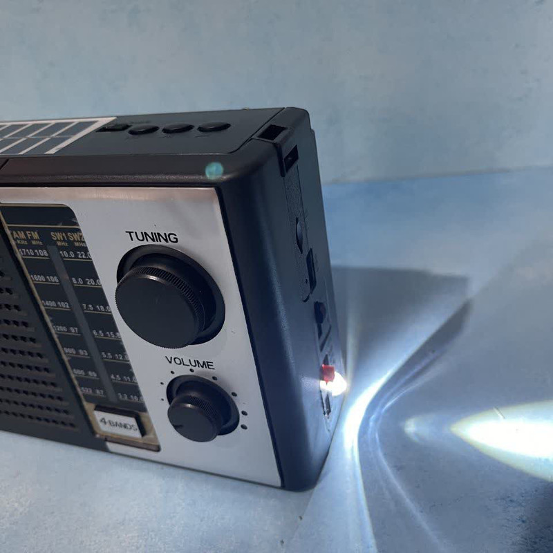 ا رویکار آمدن شبکه های مجازی و اینترنت همچنان رادیو طرفداران خود را دارد . این دستگاه با طراحی کلاسیک به شکل رادیوهای قدیمی اما با کارکردی امروزی میباشد که توانایی پخش فایل های صوتی با فرمت MP3 را از طریق درگاه های ورودی AUX و USB و پورت کارت حافظه SDدارد. رادیوی 1020bt علاوه بر امکان استفاده از برق شهری ، با داشتن باتری داخلی قابل شارژ و امکان استفاده از 6 باتری معمولی در همه جا میتواند همراه خوبی برای شما باشد.با داشتن 3موج رادیو دیگر نگران از دست دادن برنامه رادیویی مورد علاقه خود نباشید. با خرید این محصول کاربردی شما تنها صاحب یک رادیو نگردیده اید بلکه صاحب یک پلیر قوی هم شده اید .با داشتن آنتن تلسکوپی بر روی دستگاه به راحتی میتوانید در هر مکانی به ایستگاه رادیویی دلخواه خود متصل و از شنیدن رادیو لذت ببرید. این کالا دارای دو چراغ قوه هستش.این اسپیکر به صورت خورشیدی هم شارژ می شود