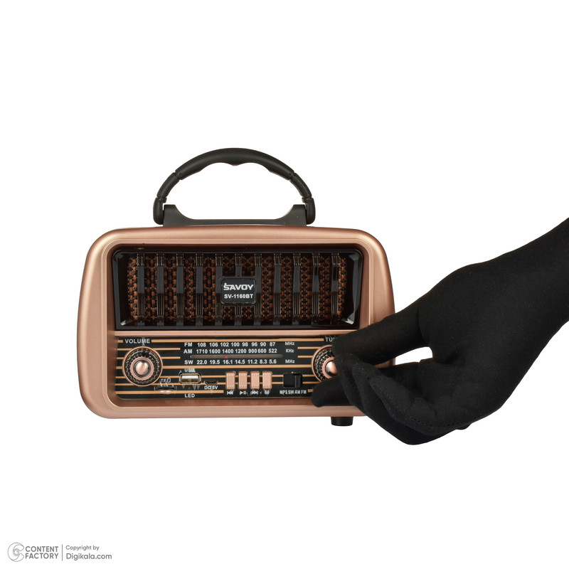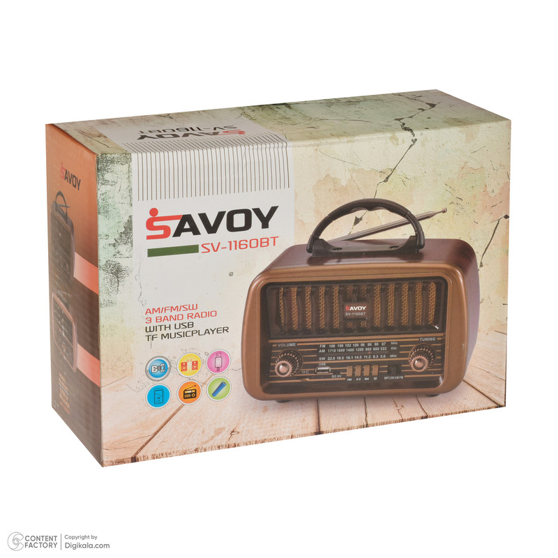 در دنیایی که همه چیز به سرعت در حال تغییر است، برخوردن به یک قطعه هنری که تلفیقی از گذشته و آینده باشد، میتواند بسیار هیجان انگیز باشد. رادیو (SAVOY)ساووی مدل SV1170BT، یک شاهکار بیزمان است که زیبایی کلاسیک و قابلیتهای مدرن را در کنار هم ارائه میدهد.این رادیو طرح قدیم با ظاهری کلاسیک و شیک، نه تنها یک وسیله پخش صوت است، بلکه یک قطعه هنری است که میتواند هر فضایی را زیباتر کند. اما تنها زیبایی ظاهری آن نیست که این محصول را خاص میکند. رادیو ساووی مدل SV1170BT با قابلیتهای پیشرفتهای که دارد، تجربهای لذتبخش از گوش دادن به موسیقی را برای شما به ارمغان میآورد.این دستگاه با پشتیبانی از سه موج رادیویی AM، FM، و SW، به شما امکان میدهد تا از گوش دادن به ایستگاههای رادیویی مورد علاقهتان در هر کجا که هستید لذت ببرید. ویژگی دارای بلوتوث آن این امکان را میدهد که به راحتی به دستگاههای دیگر متصل شوید و به موسیقی مورد علاقه خود از طریق پخش MP3 از فلش و مموری کارت گوش دهید. علاوه بر این، رادیو(savoy) ساووی مدل SV1170BT دارای درگاه USB و TF است، که امکان پخش مستقیم موسیقی از فلش مموری یا کارت حافظه را فراهم میآورد. و نگرانی از بابت تمام شدن شارژ دستگاه نداشته باشید؛ زیرا با باتری شارژی ۱۲۰۰ میلی آمپر ساعتی که دارد، میتوانید ساعتها از گوش دادن به موسیقی یا اخبار بدون نگرانی از قطع شدن برق لذت ببرید.رادیو ساووی مدل SV1170BT نه تنها یک وسیله پخش است، بلکه یک رفیق قابل اعتماد برای دورهمیهای خانوادگی، مهمانیها، و یا حتی لحظات تنهایی شماست. این دستگاه، با تلفیق بینظیری از طراحی کلاسیک و قابلیتهای مدرن، تجربهای خاص از گوش دادن به موسیقی را برای شما رقم میزند.پس اگر به دنبال یک هدیه خاص برای عزیزانتان هستید یا میخواهید فضای خانه یا محل کارتان را با یک قطعه هنری شیک و کاربردی زیبا کنید، رادیو ساووی مدل SV1170BT انتخابی ایدهآل است. اجازه دهید موسیقی شما را به دنیایی دیگر ببرد و با این رادیو طرح قدیم، هر روزتان را به یادماندنی کنید.