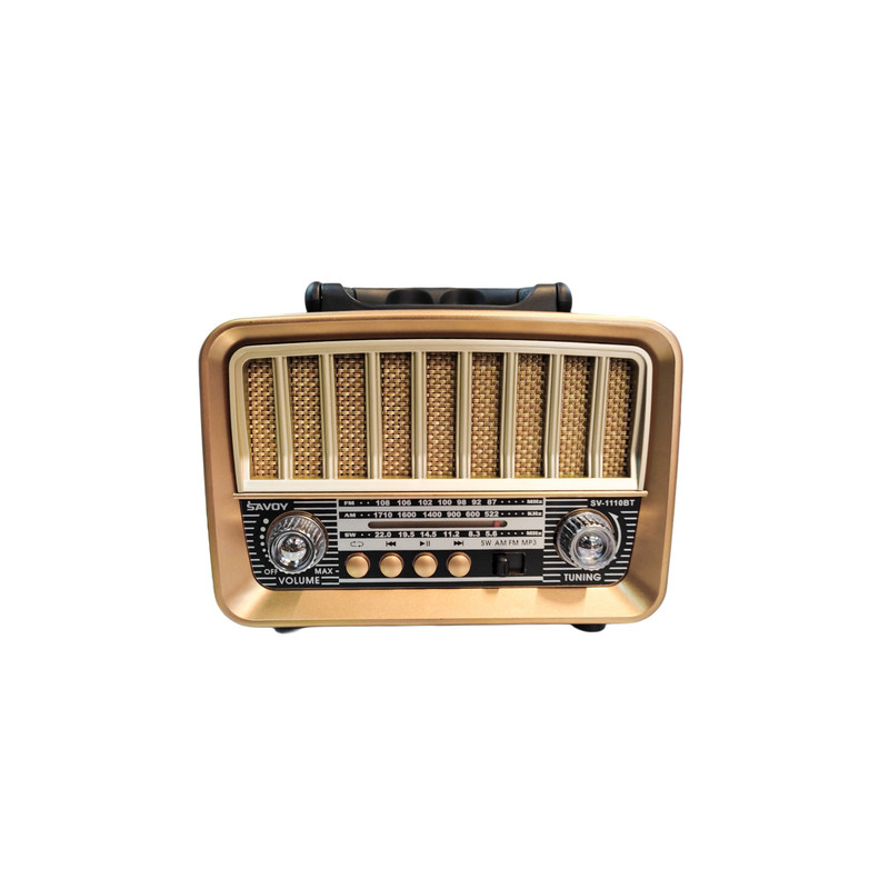 با وجود پیشرفت تکنولوژی باز هم رادیو طرفداران خاص خودش را دارد. رادیو 1160BT رادیویی زیبا و جذاب با امکانات پیشرفته امروزی با طرح نوستالژیک خود به صورت رادیو های قدیمی، یادآور خاطرات بسیار شیرینی است. در این دستگاه نمایشگر تنظیم ایستگاه رادیویی مانند نسل رادیوهای قدیمی طراحی شده است . این رادیو اسپیکر گیرنده امواج رادیویی FM، AM و SW می باشد و قابلیت پشتیبانی از USB را داشته و همچنین دارای قابلیت اتصال بلوتوث می باشد. انرژی این رادیو به 2 صورت قابل تامین است:باتری داخلی قابل شارژ و یا 2 عدد باتری قلمی بزرگ.این رادیو در همه جا میتواند همراه خوبی برای شما باشد و با داشتن آنتن تلسکوپی بر روی خود به راحتی می تواند در هر مکانی به ایستگاه رادیویی دلخواه شما متصل و شما را با پخش رادیو لذت خاصی دهد.همچنین وجود دسته بر روی بدنه حمل این رادیو را راحت کرده است.