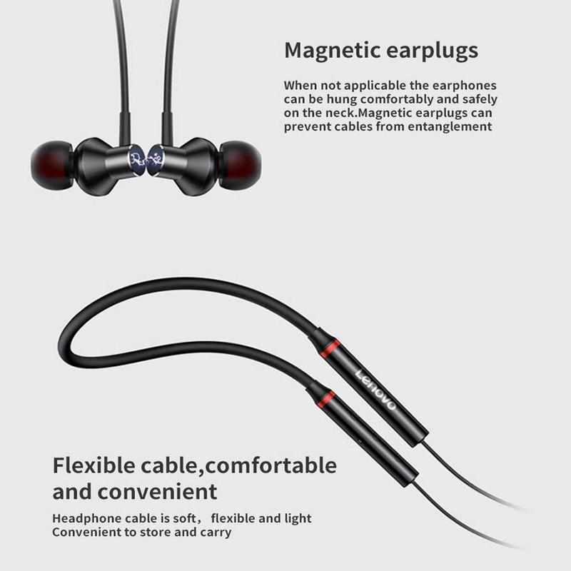 سری های هندزفری Lenovo HE05x به صورت تو گوشی طراحی شده اند و زاویه ای 45 درجه دارند و دارای سری های سیلیکونی می باشند تا به راحتی داخل گوش قرار بگیرد و دقیقاً بر اساس ارگونومی گوش طراحی شده تا کاربر در راحت ترین حالت ممکن به گوش دادن موسیقی بپردازد. همان طور که اشاره شد، سری های این محصول دارای زاویه ای 45 درجه بوده که باعث شده تا هندزفری بدون هیچگونه مزاحمتی داخل گوش کاربر قرار گیرد و هرگز از گوش آن جدا نشود.بر روی بدنه هندزفری HE05x یک قسمت کنترل قرار دارد که شامل 3 کلید فیزیکی بوده و وظیفه آن ها تغییرات موسیقی و ولوم، مدیریت تماس ها و پخش و قطع آهنگ می باشد و این امر بدون نیاز به منبع پخش (برای مثال: خود گوشی) انجام می پذیرد. یکی از نقاطی که می توان دقت کمپانی لنوو را در آن مشاهده کرد دو سری تل این محصول می باشد ، زیرا بر روی هر دو سر یک قسمت ضخیم تر قرار داده تا تعادل این محصول حفظ شود و فرم قرینه هندزفری کمک می کند تا بتوانید بدون جابجا شدن و متمایل شدن هندزفری به یک سو، از آن استفاده نمایید.هندزفری بلوتوث Lenovo HE05x Hanging دارای یک باتری داخلی بوده که در مدت زمان 2 ساعت به شارژ کامل خود رسیده و بعد از آن قادر است به مدت زمان 8 ساعت برای موسیقی و مکالمه به همراه شما باشد و البته این نکته قابل ذکر است که این مدت زمان برای زمانیست که با ولوم 50 درصد به گوش دادن موسیقی بپردازید. دامنه فرکانس این محصول 20-20000HZ بوده که باعث شده تا تمامی صدا های زیر و بم را دریافت کرده و این امر باعث شده تا انواع سبک های موسیقی را با جزئیات کامل به گوش شنونده برساند.سری های این محصول به صورت مگنتی طراحی شده و باعث شده تا در مواقعی که نیاز به آن ندارید، سری ها را به هم متصل کنید تا به خوبی بر روی گردن شما بماند. تنها راه اتصال به این هندزفری از طریق بلوتوث است و ورژن بلوتوث آن نسخه 5.0 می باشد. مزیت بلوتوث 5.0 نسبت به 4.2 این بوده که می توان از اتصال پایدارتری برخوردار بود. این را نیز باید افزود که اگر دستگاهی که به هندزفری متصل می کنید نیز دارای بلوتوث نسخه 5.0 باشد، باتری کمتری از دستگاه ها کم خواهد شد.