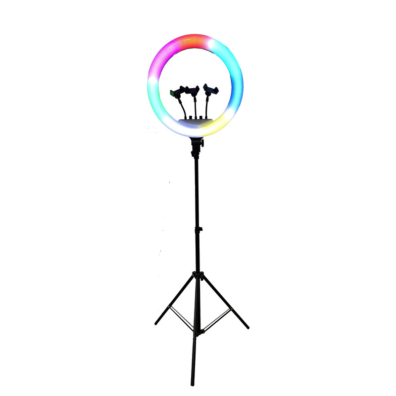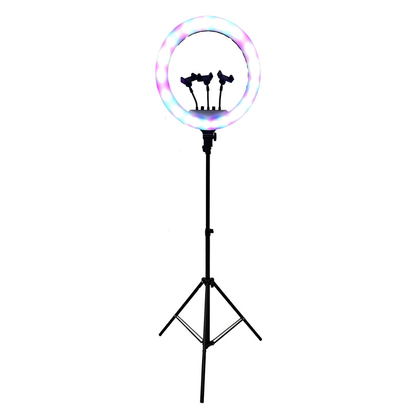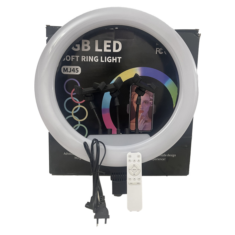 نور مهمترین ویژگی یک عکس خوب است بیشتر عکاسان و میکاپ آرتیست ها با استفاده کردن یک دستگاه به شدت قوی و ارزان قیمت به نام رینگ لایت استفاده می کنند پس به صورت کلی رینگ لایت یک ابزار چند کاره قابل استفاده است که استفاده و بهره گرفتن از رینگ لایت به شدت آسان است ولی در عین حال ابزاری به شدت قوی است . معمولا شکل رینگ لایت به صورت دایره ای از رنگ ها است که توسط لامپ های فلورسنت یا ال ای دی های بسیار کوچک و زیاد تشکیل شده اند. رینگ لایت حرفه ای RGB LED MJ45 جنسی بسیار قوی و زیبا است که جوابگوی بیشتر نیاز های مشتریان عزیز است