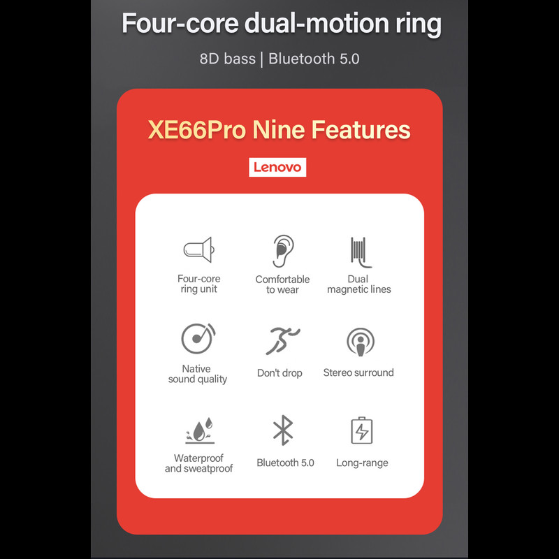 هدفون بی سیم لنوو مدل HE05X PROمخصوص علاقه مندان به ورزش که دوست دارند در حال دویدن و پیاده روی به موسیقی نیز گوش دهند. این هدفون به صورتی طراحی شده تا در استفاده دراز مدت گوشتان را اذیت نکند. یکی از دلایل این ویژگی وزن سبک این مدل است. نوار گردنی هدست که در پشت گردن قرار میگیرد که باعث میشود بدون ایجاد مزاحمت شما به کارهایتان برسید و موسیقی گوش دهید. روکش روی ایرفونهای هندزفری قابل جدا شدن است. این هدست مجهز به واحد درایور 10 میلی متر برای ایجاد باس عمیق و همچنین آواز نرم است. هدفون بی سیم لنوو مدل HE05X PRO دارای تراشه بلوتوثی نسخه 5.0 است که از طریق آن به گوشی، تبلت و یا لپ تاپ متصل میشود.برای این مدل بلوتوث نسخه 5.0 در نظر گرفته شده و برد بلوتوث این هدفون تا 10 متر محاسبه شده است. یک باتری 105 میلی آمپرساعت درون این هدست به کار رفته است که با یکبار شارژ می تواند 8 ساعت آهنگ پخش کند. این هدست تا 120 ساعت نیز میتواند در حالت آماده به کار باشد. گفتنی است که در هنگام مکالمه هم تا 8 ساعت شارژ را نگه میدارد. یکی از دلایلی که این مدل را برای استفاده هنگام ورزش مناسب کرده، گواهی IPX5 است. این گواهی باعث شده تا این مدل نسبت به آب و رطوبت مقاوم باشد. این مدل به گردنی مجهز شده و این ویژگی باعث شده تا این هدفون از گوشتان نیافتد.