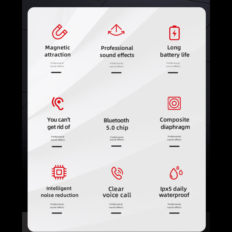 | سایر مشخصات | 8 ساعت عمر باتری در هنگام پخش موزیکدکمههای کنترل صدا و تماس بر روی هدفوناستفاده از بلوتوث نسخه 5.0ضد آب با استاندارد IPX5سریهای مگنتیدارای دو اس\یکر در هر گوشدارای فناوری کاهش نویزانعطافپذیرمقاوم در برابر آب240 ساعت استدبای دارای صدایی بسیار شفافصدایی با وضوح بسیار بالادارای کیفیت منحصر به فرد اس\یکر ها |